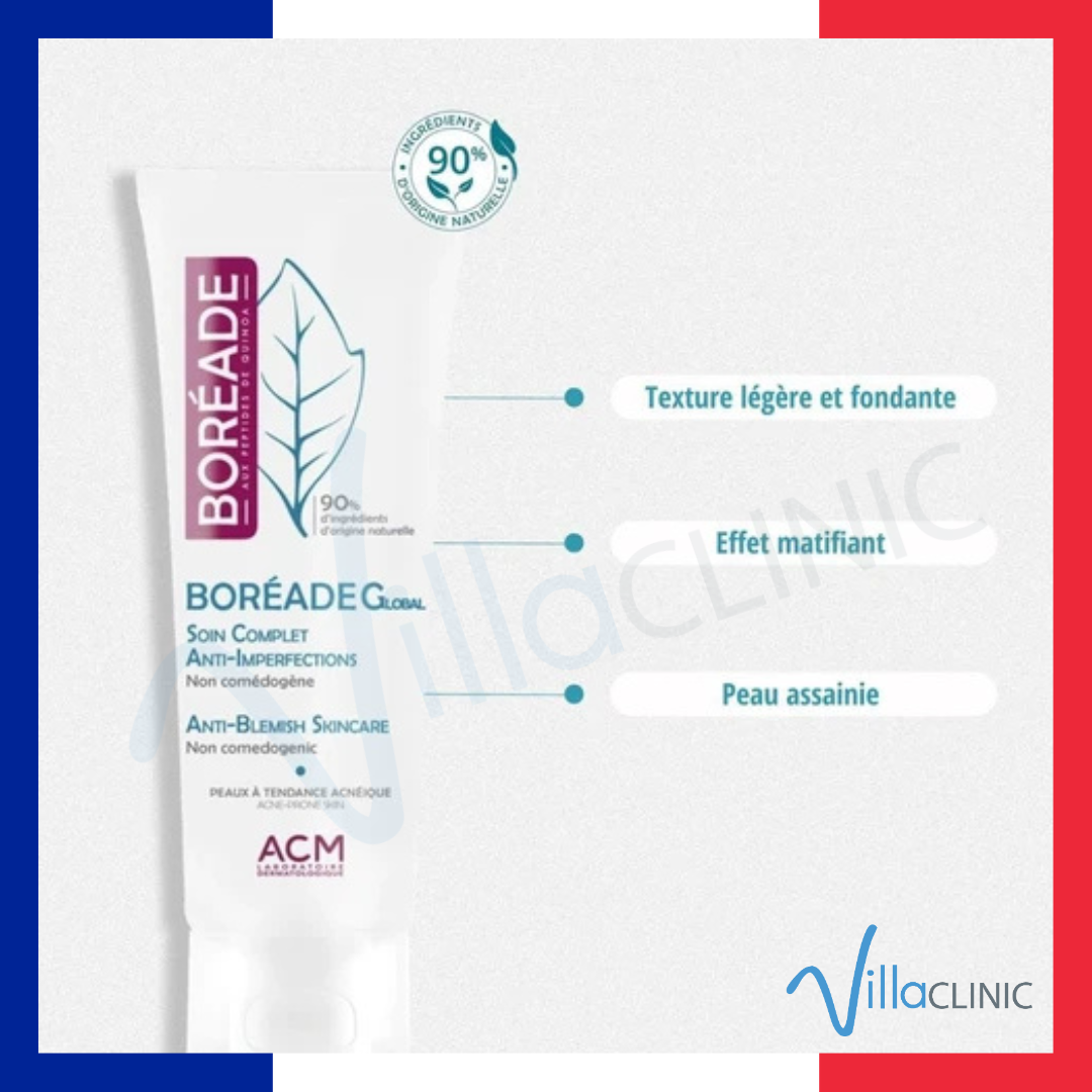 เวชสำอางจากประเทศฝรั่งเศสที่พัฒนาขึ้นโดยผู้เชี่ยวชาญด้านผิวหนัง สำหรับดูแลผิวที่มีแนวโน้มเป็นสิวง่ายและมีความมันส่วนเกินโดยเฉพาะ สูตร BOREADE Global ช่วยลดการเกิดสิว ควบคุมความมันส่วนเกิน พร้อมผลัดเซลล์ผิวอย่างอ่อนโยน เพื่อให้ผิวแลดูกระจ่างใส เรียบเนียน และสุขภาพดีขึ้น